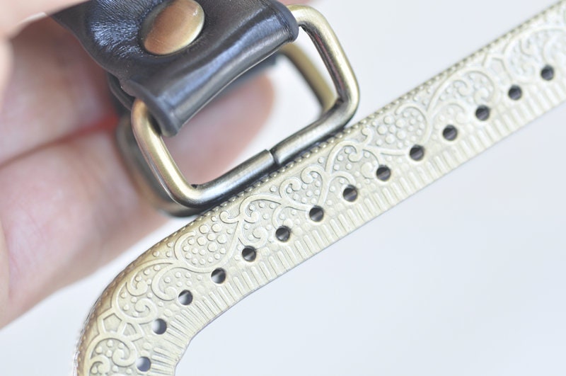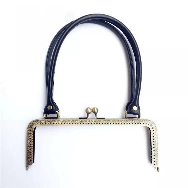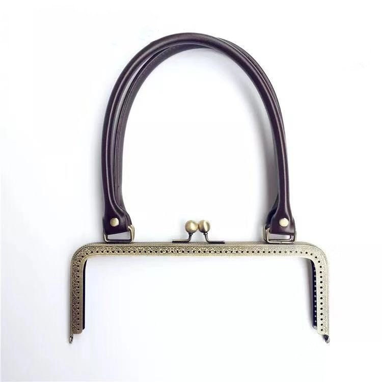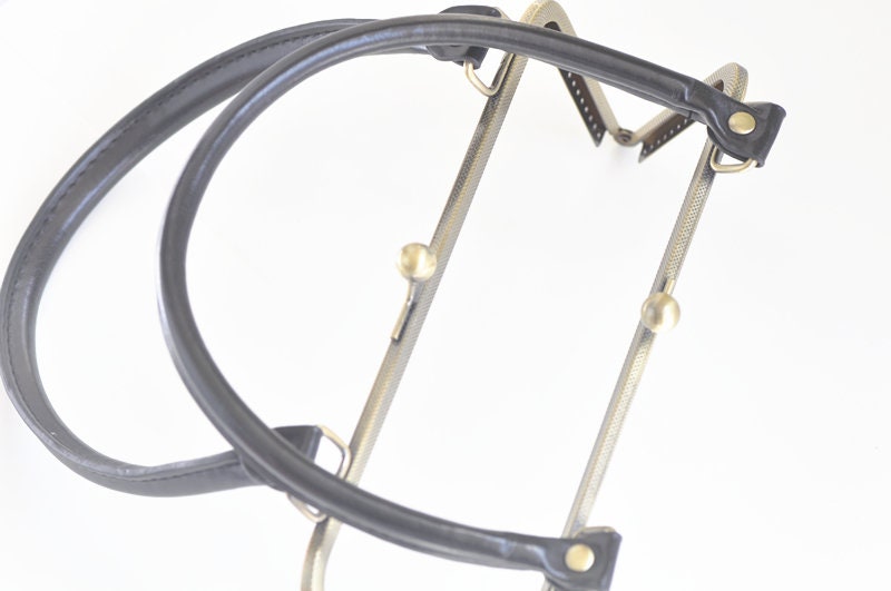 Antique brass sewing purse frame with Coffee/Black PU Leather Handle.