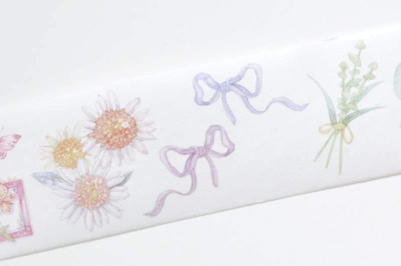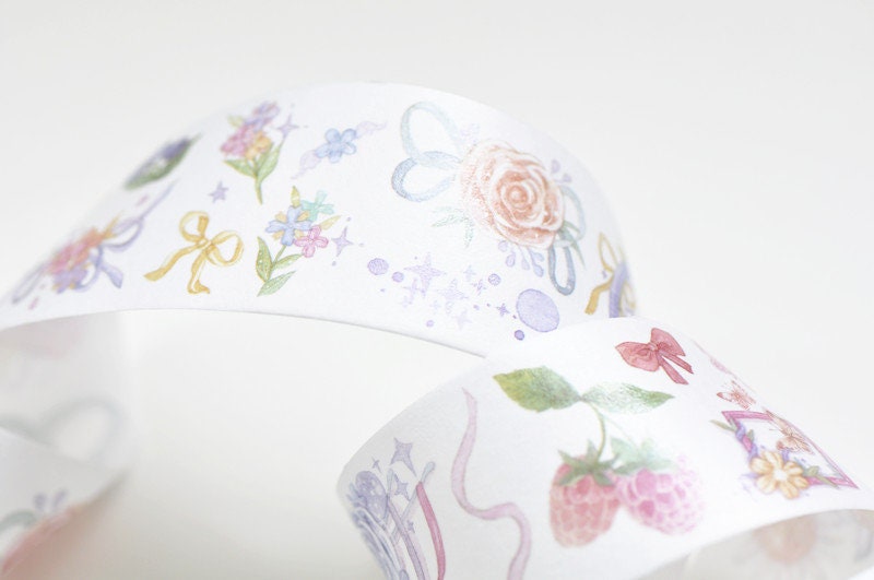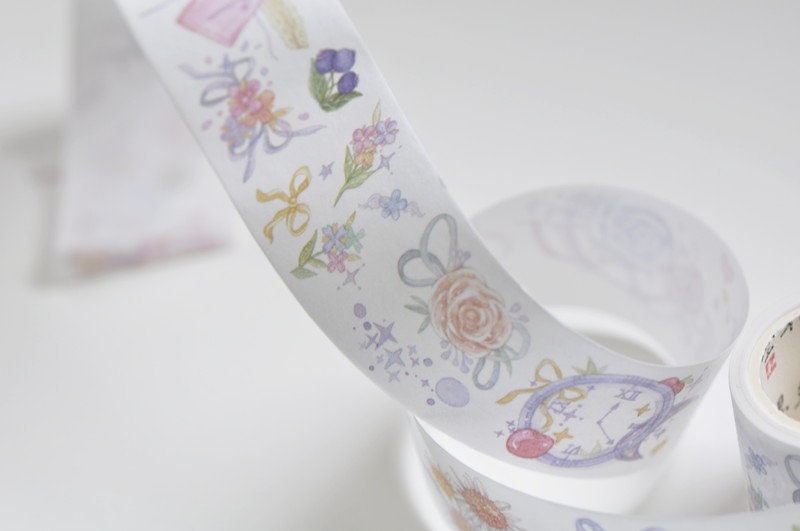 Washi tape is made of rice paper. It is slightly transparent, flexible, easy to tear by hand.