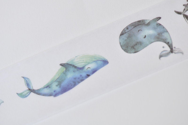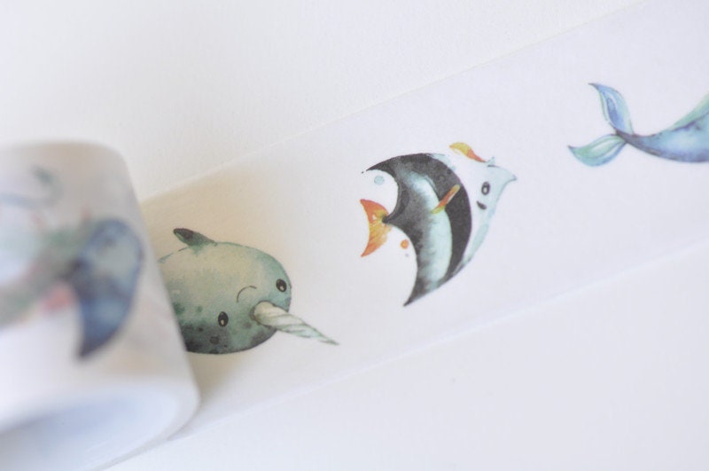 Ocean Washi Tape Shark, Fish, Squid Japanese Masking Tape Deco Tape 30mm x 3 Meters Roll No.12207
