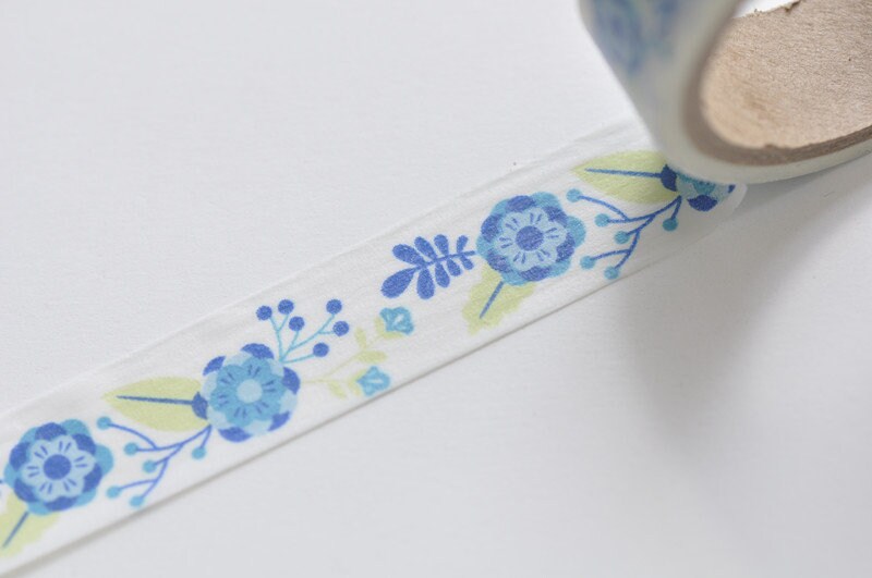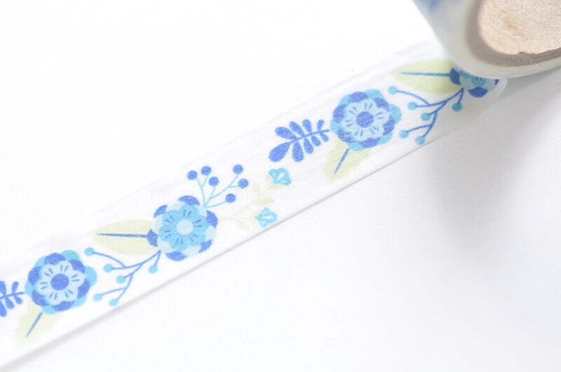 Retro Floral Design Blue Washi Tape 15mm Wide x 5 Meters No.10635
