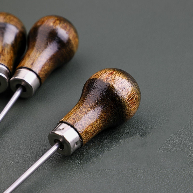 1 Piece Wooden handle awl /Leather made tool.