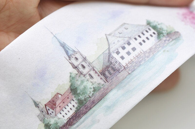 1 Roll Of Retro Castles Washi Tape /Japanese Masking Tape/ Deco Tape 45mm wide x 3M No.10555