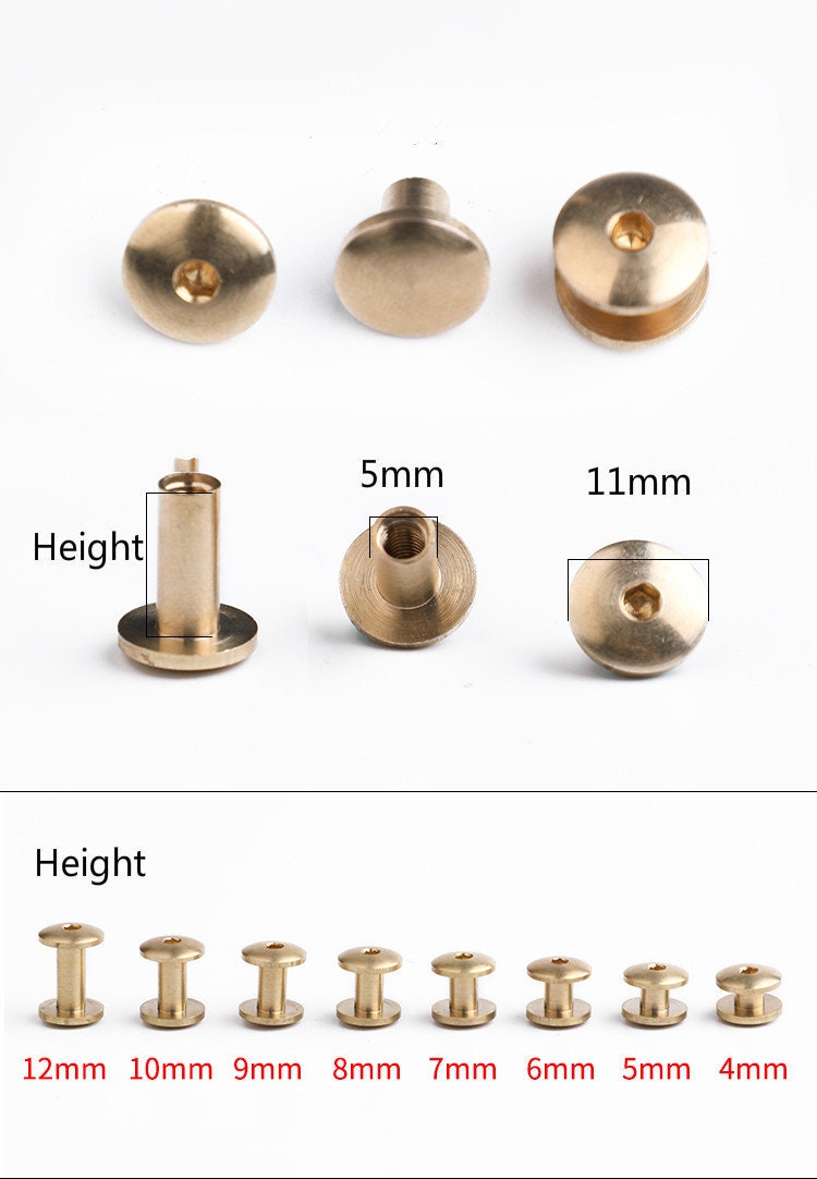 11mm Brass Hexagon Screws Leatherworking Screws Belt Stud 2 Sets (2 button+2 bottom screw) A Pack