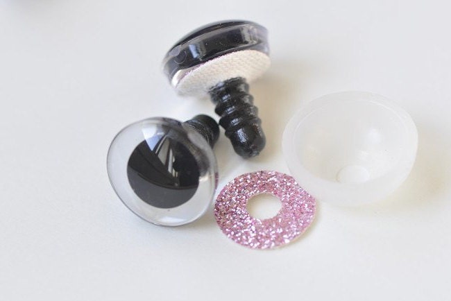 Sparkly Eyes for Puppets, Fantasy Creatures, Plush Animals, Crochet Projects, Dolls, and Teddy Bears. Plastic Safety Eyes come with washers that can be installed by hand or you can use the Insertion Tool available in the Assortments, Sets, and Tools Section of the shop at the link below. All Eyes are sold in pairs.