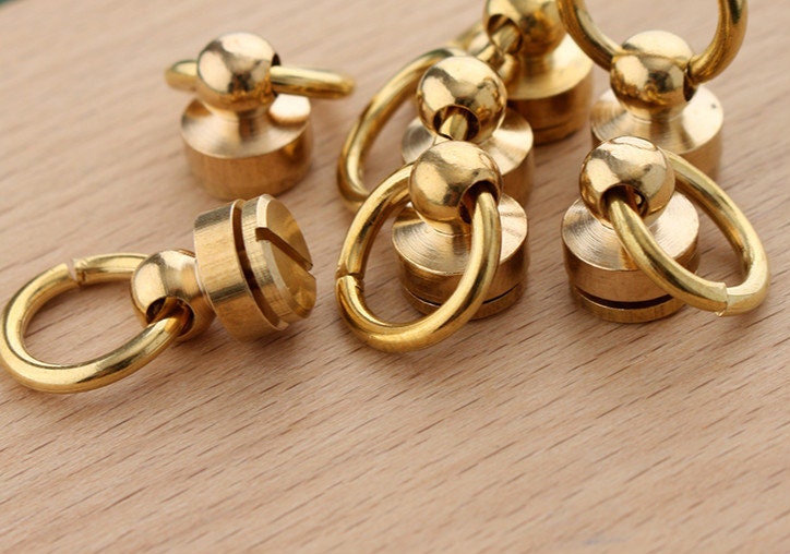 2pcs Brass Screwed Studs Back Pull Ring Button Leather Hardware Ring Inner Size 14mm