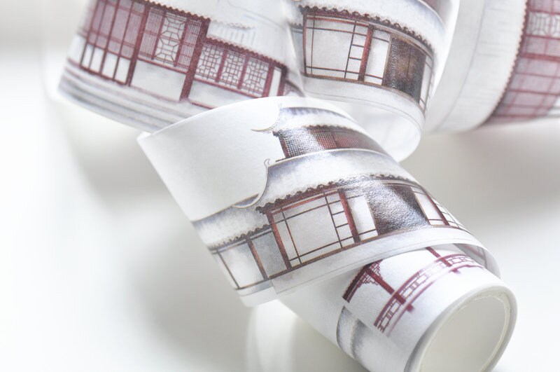 Asian House Snow Covered Masking Tape Lined Wide Scrapbooking Tape 45mm x 3 Meters No.11108